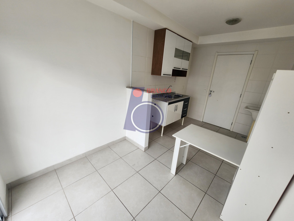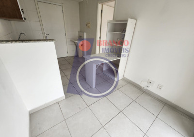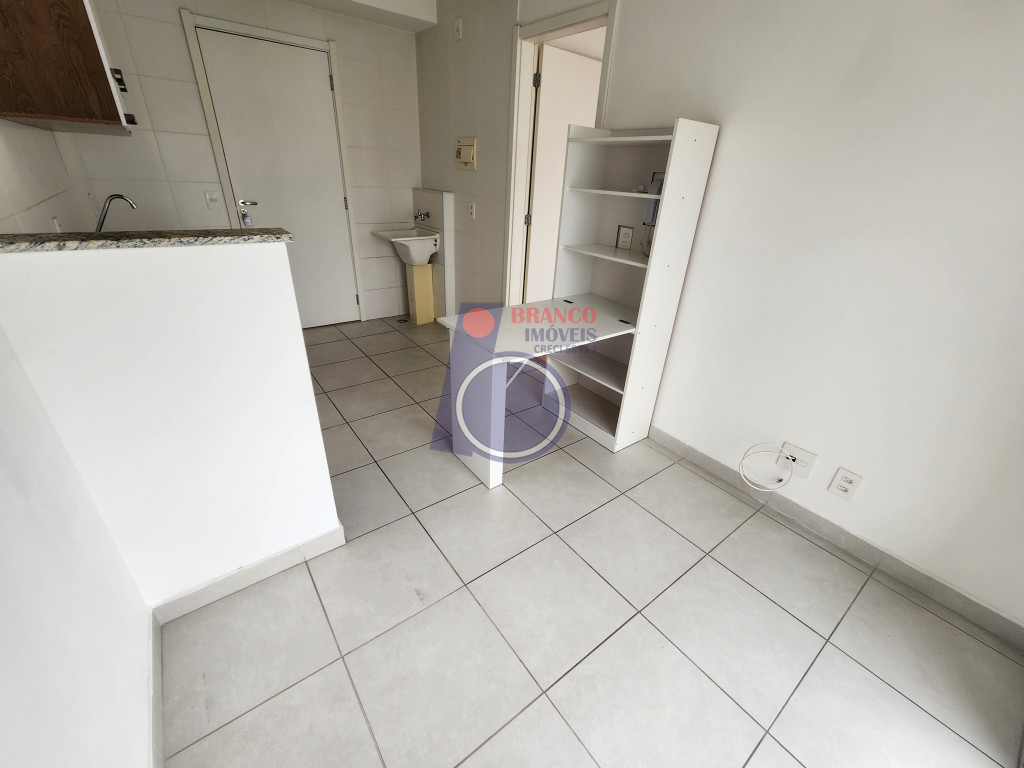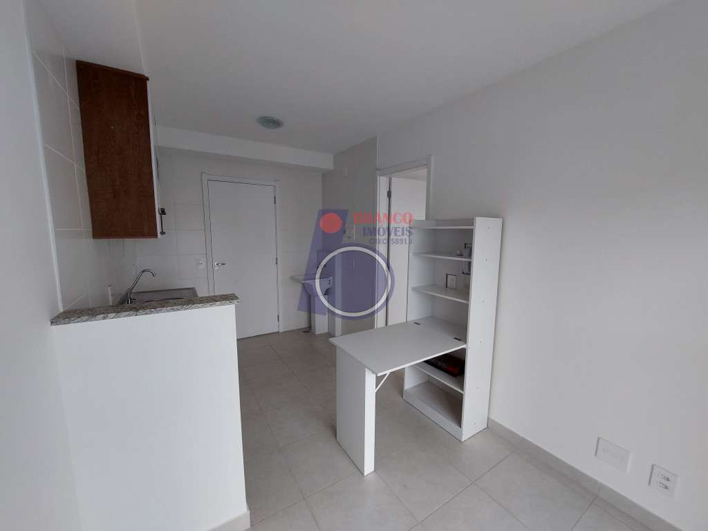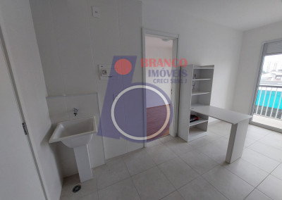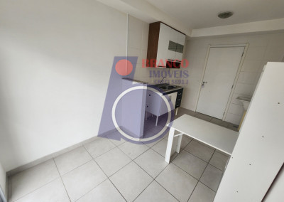 01 dormitório, Sala, Cozinha (com armário e mesa dobrável), WC, Lavanderia e uma Sacada ampla da sala até o quarto.